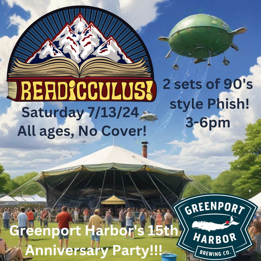15th Anniversary (Peconic) Saturday, July 13, 2024 12:55 PM 6:00 PM Greenport Harbor Brewery 42155 Main Road Peconic, NY, 11958 (map) Google Calendar ICS FEATURING MILE ZERO FEATURING READICCULUS!